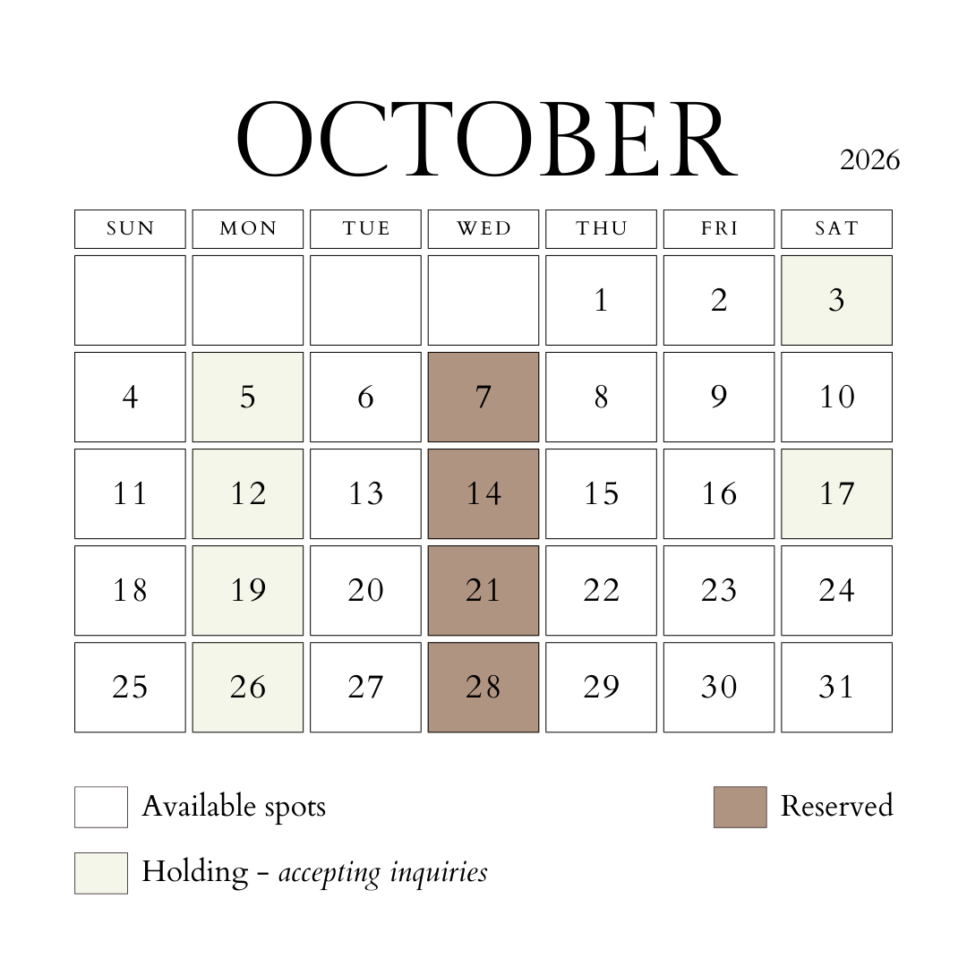 complete the inquiry form below to receive your photography guide and availability information via email